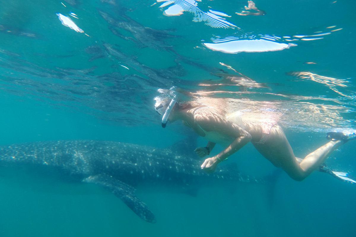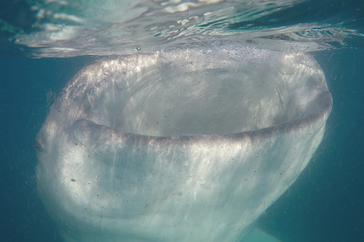 Su alimentación se basa principalmente de plancton, aunque regularmente también se alimentan de bancos de peces pequeños y calamares Nada junto al pez más grande del mundo y vive una de las experiencias más impactantes de tu vida. ¡No te arrepentirás!