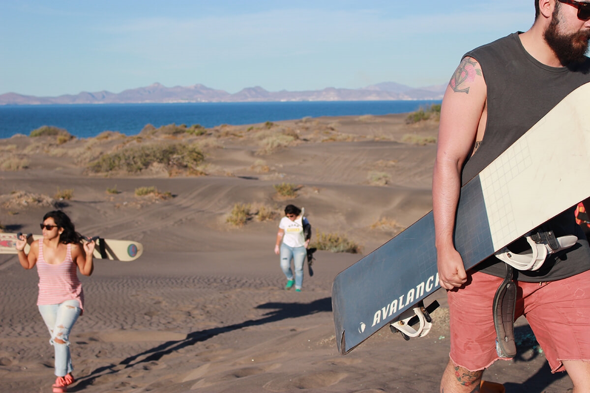 La transportación es hacia el norte tomando la carretera transpeninsular y llegar al entronque a San Juan de Los Planes, luego tomando una desviación que nos conduce a un camino por terracería para llegar a dunas de más de 30 metros para realizar la actividad, en el lugar encontraremos dunas pequeñas medianas y gigantes para hacer la actividad, diversión total y bonita vista al atardecer